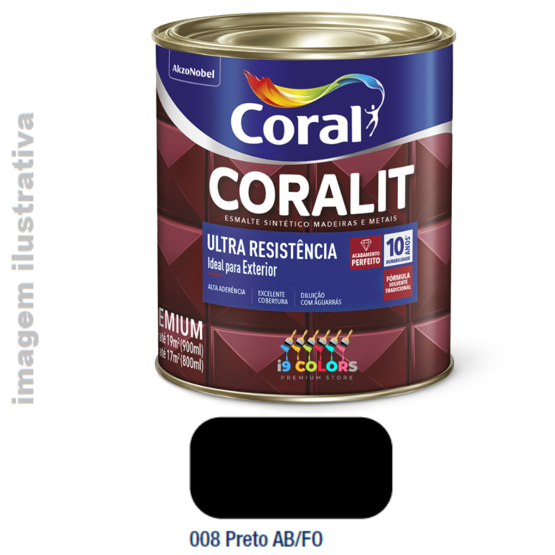 Esmalte Sintético Coralit Ultra Resistência  0,9 litro - Coral - Preto Fosco