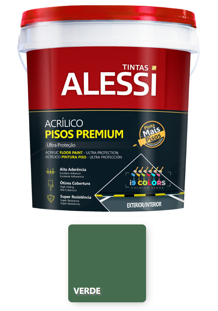 A Tinta Acrílica para Piso Alessi Ultrapiso Premium foi especialmente desenvolvida para quem busca alta resistência à abrasão e ao tráfego de pessoas. Sua formulação de altíssima qualidade oferece grande resistência às intempéries (sol e chuva), além de alto rendimento, excelente aderência e cobertura.